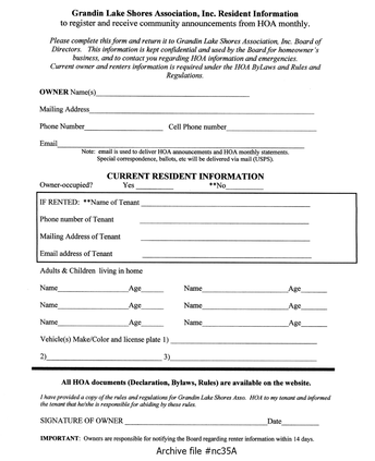 This is an image of a questionnaire used for many years to gather information on residents.