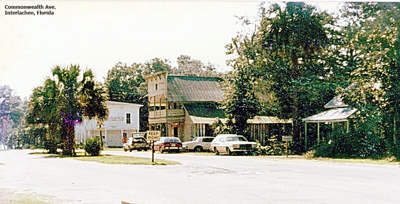 Below is a photo of Commonwealth Ave. in Interlachen which was once the "main drag". Arson has destroyed the Gillett Store and the little house between the Gillett Store and the Brush Store which is still standing as is Interlachen Hall. The median strip has been removed from the road.