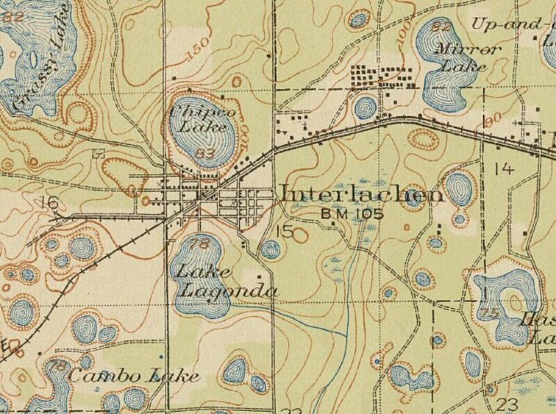 This is a 1916 map of Interlachen, hover over the map to enlarge sections or click it for a larger map.